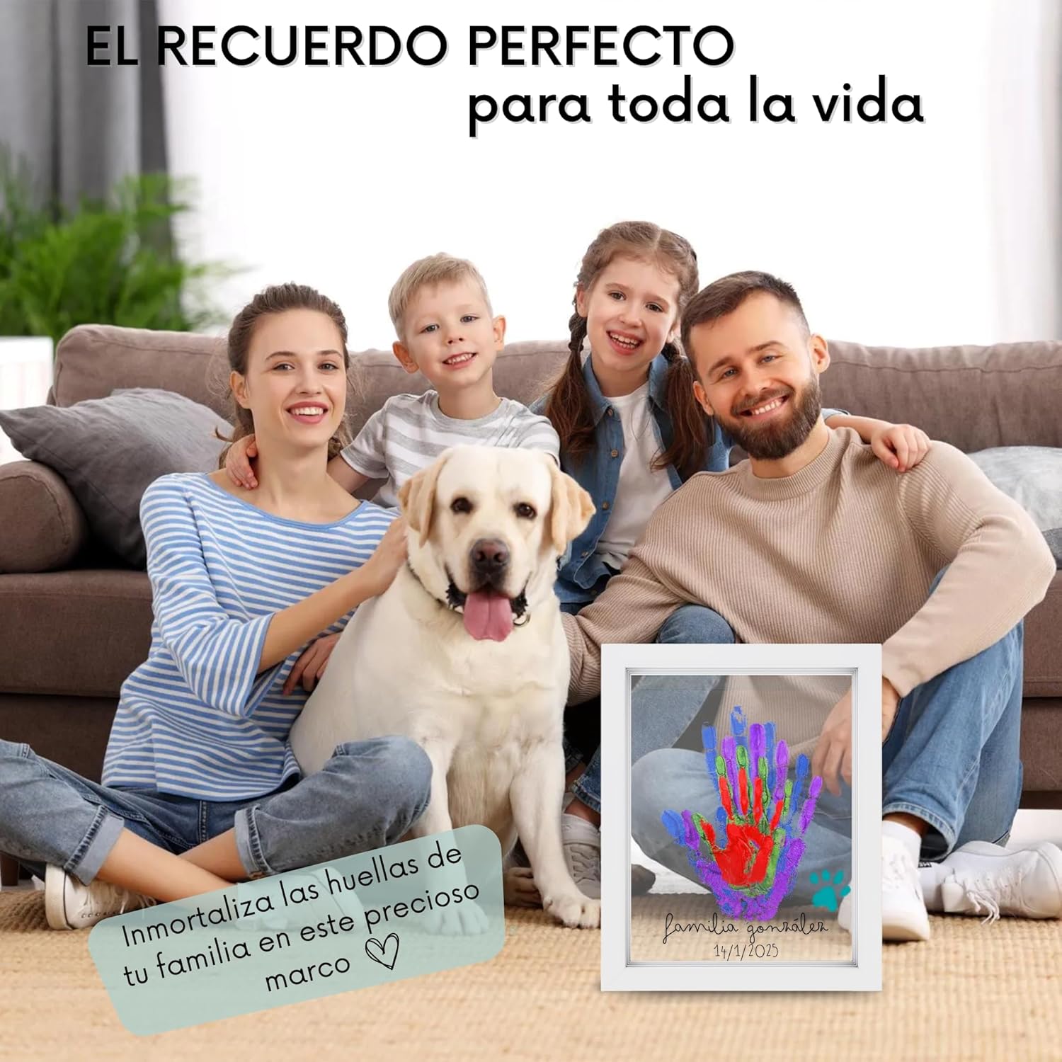 Nuestros marcos de huellas son el regalo perfecto para capturar las huellas de tu bebé recién nacido y toda la familia. Con espacio para 4 huellas, este set incluye todo lo necesario para crear un recuerdo duradero y especial. Las instrucciones en español te guiarán paso a paso en el proceso de pintar las manos y marcar las huellas, secar y decorar, y montar el marco.