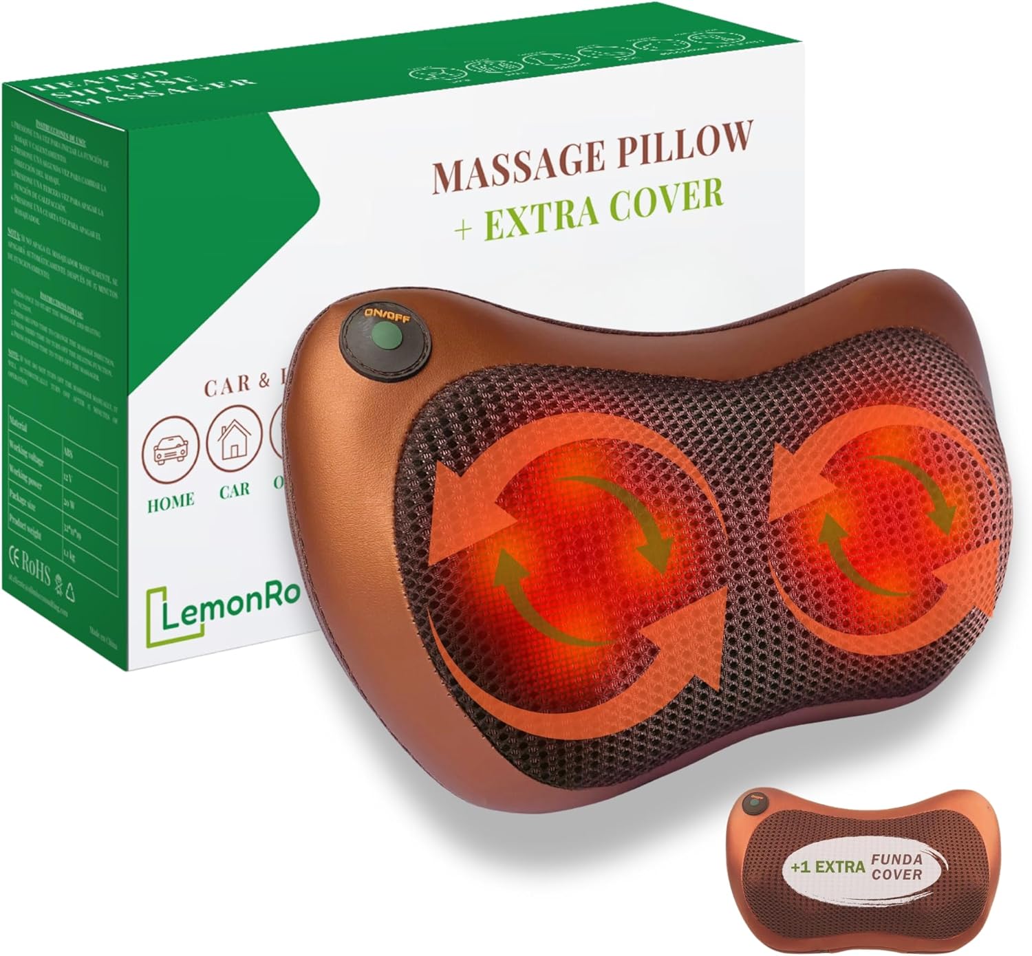 Masajeador Cervical y Espalda. Cojín Eléctrico con Calor y una Funda Extra (Marrón) – Almohada Cervicales y Cuello, Masaje Shiatsu Bidireccional con 8 Rodillos, Ideal para Casa, Oficina, Coche o Viaje – ¿vale la pena?