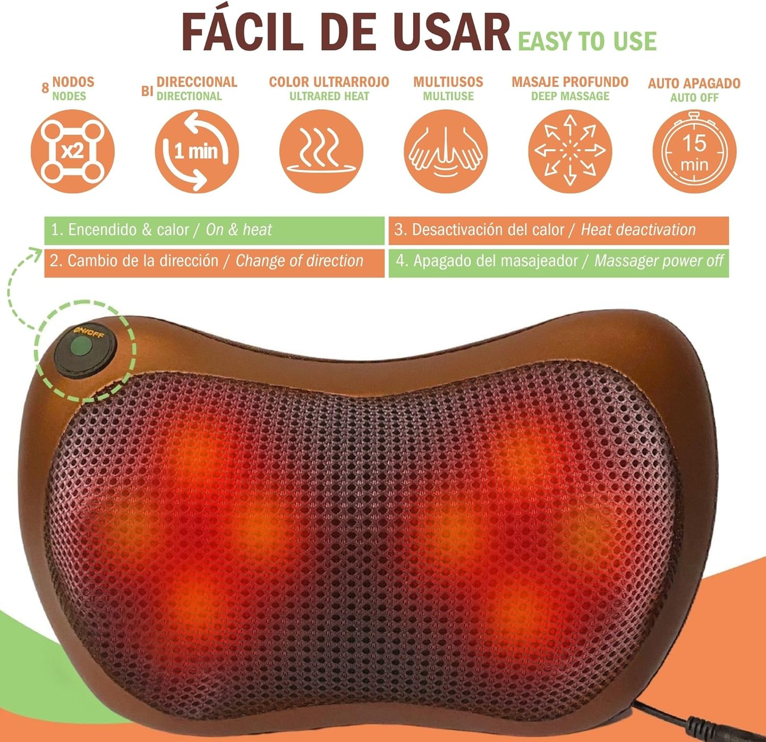 CALOR TERAPEÚTICO: Experimenta un calor suave y calmante que alcanza capas profundas de tus músculos, aumentando la eficacia del masaje, aliviando molestias y mejorando la circulación. Para disfrutarlo en cualquier lugar, incluye adaptador para hogar y coche.
