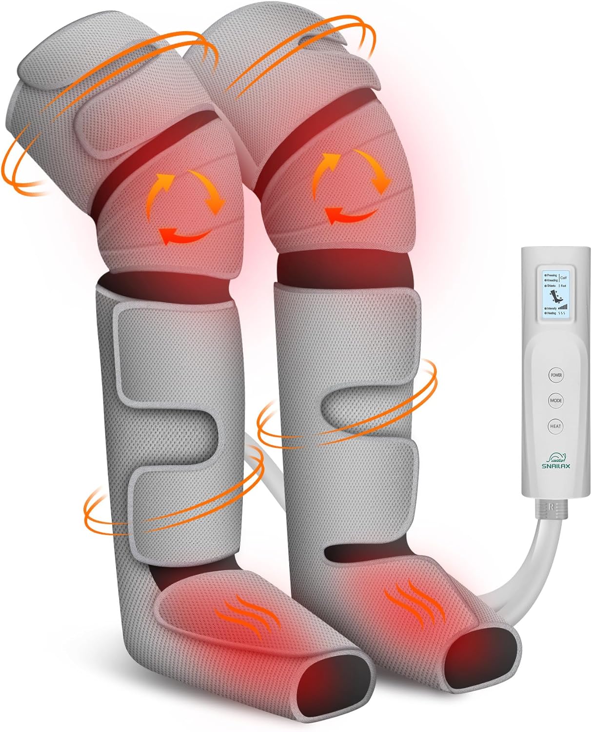 3 Modos de Masaje y 3 Niveles de Intensidad: Snailax masajeador piernas con calor con compresión cuenta con 3 modos de masaje: prensado, amasado, Shiatsu, con 3 niveles de intensidad de masaje variable a elegir para ofrecerle una experiencia de masaje óptima.