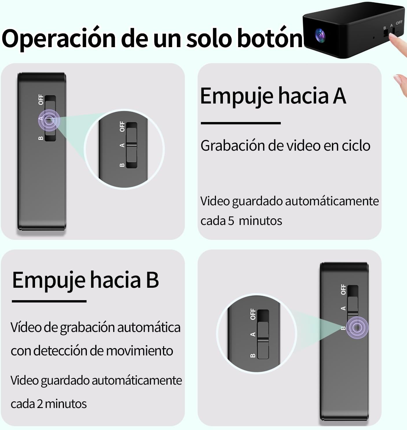 | Grabación en bucle y detección de movimiento | Puede requerir tarjeta de memoria de alta velocidad |