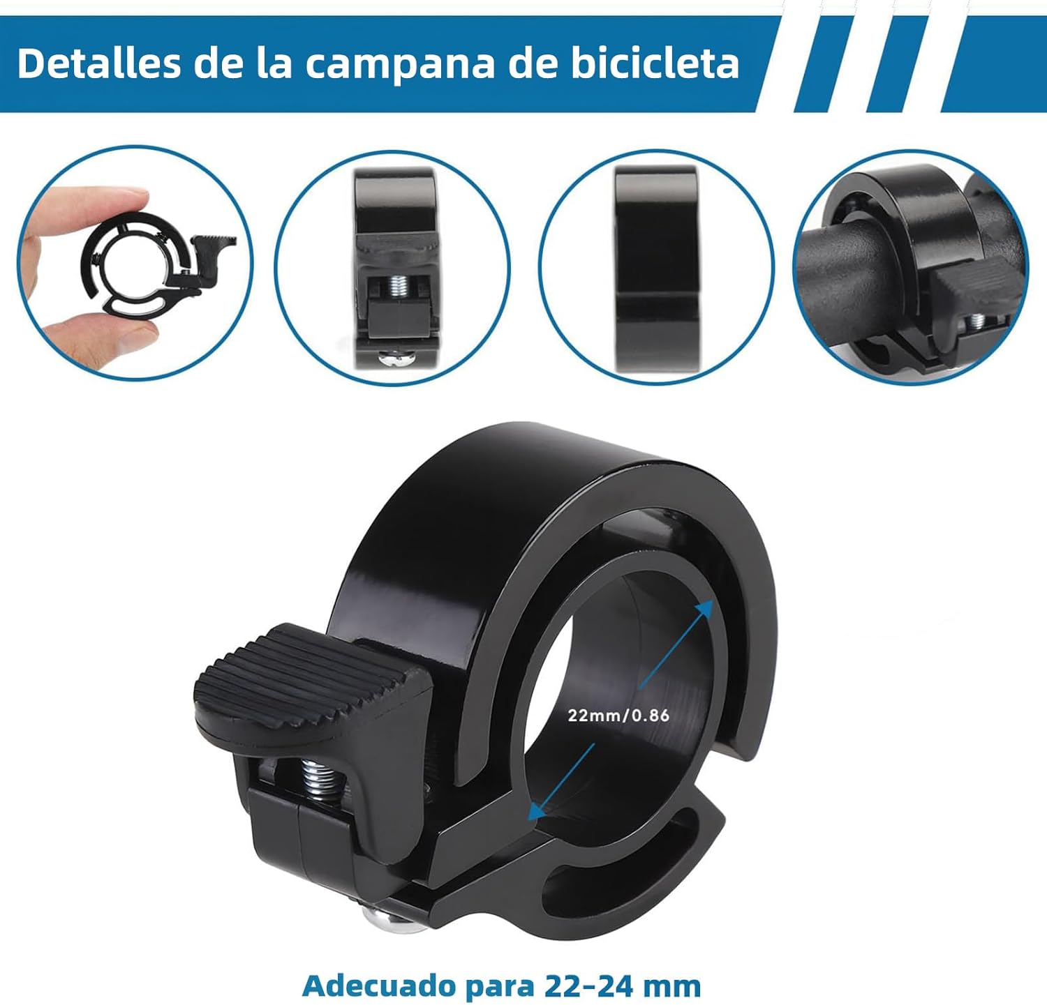 • Amplia Compatibilidad para Todo Tipo de Bicicletas: Diseñado para manillares con diámetro de 22-24 mm, este timbre bicicletas infantil se instala sin problemas en mountain bikes, e-bikes, bicicletas urbanas, de carrera, de fitness, y también en triciclos y patinetas, haciéndolo una opción versátil para todo tipo de bicicletas.