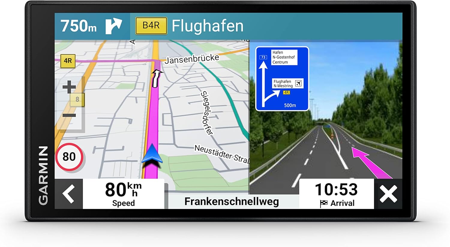 Simplifica tu conducción con el dispositivo Garmin DriveSmart 66. Usa la asistencia de voz de Garmin para buscar y navegar fácilmente a donde quieras ir. Las nítidas pantallas de alta resolución de 6 pulgadas te guiarán en tu camino con actualizaciones de mapas de Europa y medioambientales. Aprovecha al máximo los viajes por carretera con las calificaciones de los viajeros de TripAdvisor y millones de puntos de interés de Foursquare. Evita retrasos y encuentra desvíos con los que puedas ganar tiempo gracias al servicio de tráfico en directo de la aplicación Garmin Drive. También puedes ver los pronósticos del tiempo, las condiciones actuales y el radar animado.