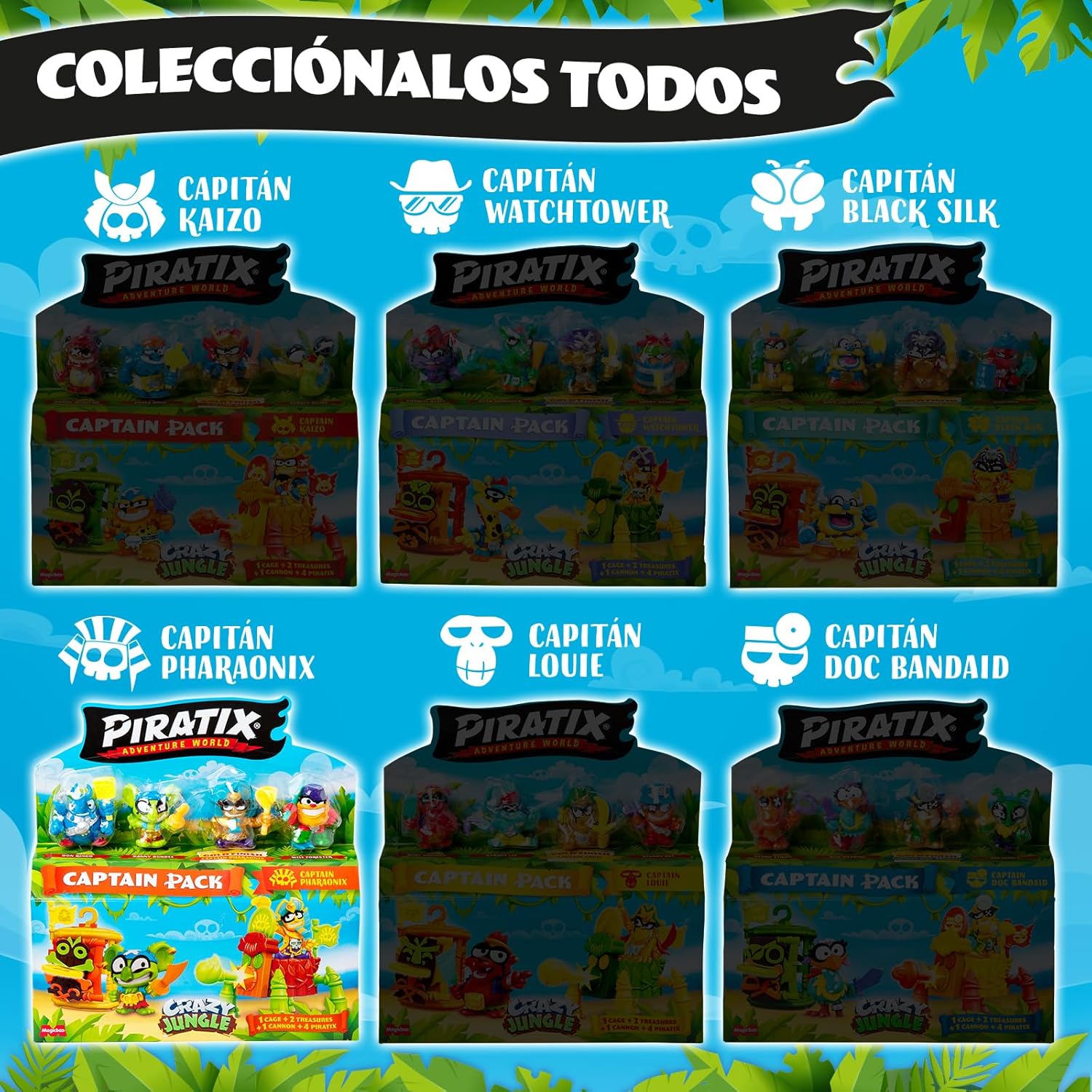 AUMENTA TU COLECCIÓN RÁPIDAMENTE: Amplía o empieza tu colección Piratix con este Captain Pack, que incluye 4 figuras Piratix, 4 accesorios neón, 1 Jungle Cage, 1 Cañón, 2 banderas exclusivas con efecto neón y 2 tesoros exclusivos con efecto neón. Con este pack te aseguras 1 Capitán DORADO. Hay más de 70 personajes Piratix para coleccionar, junto con sus accesorios que se pueden intercambiar.