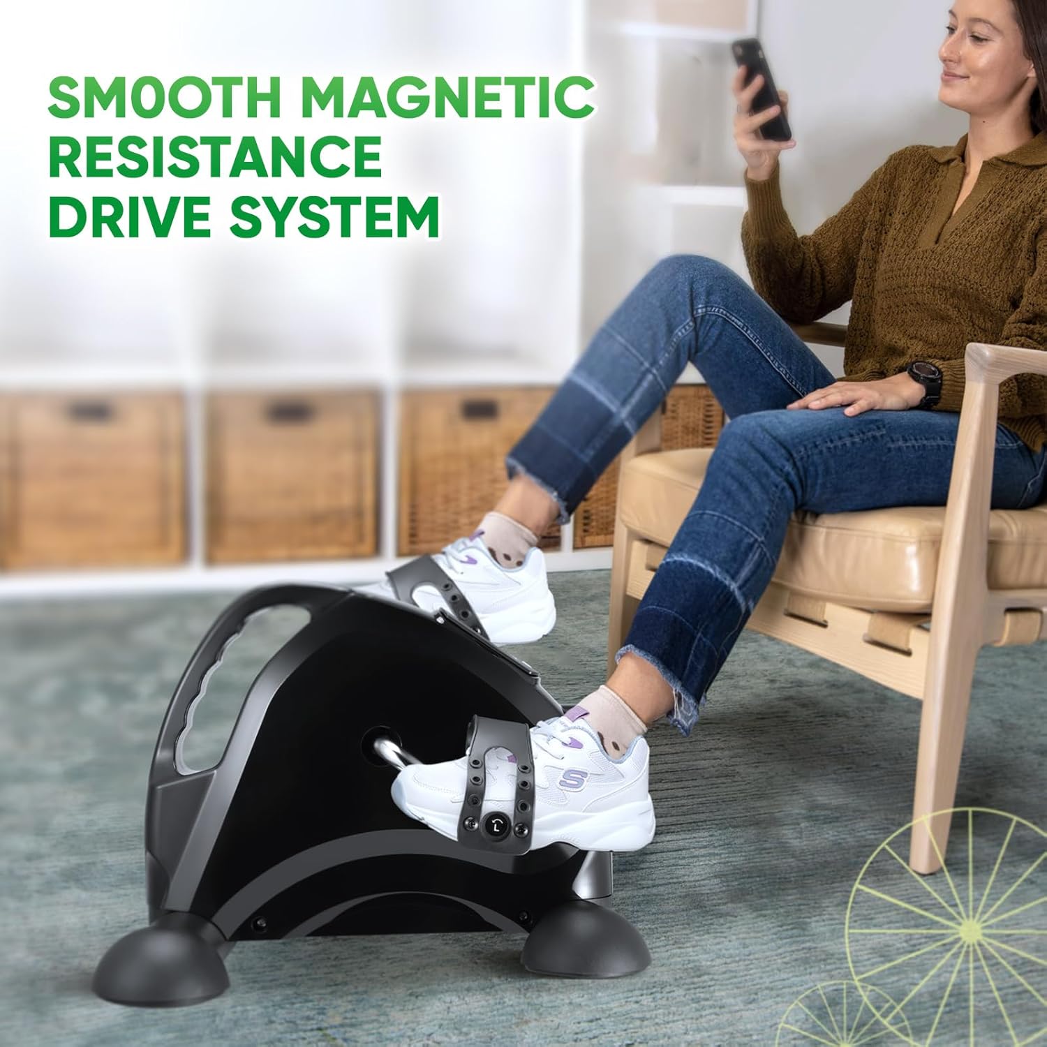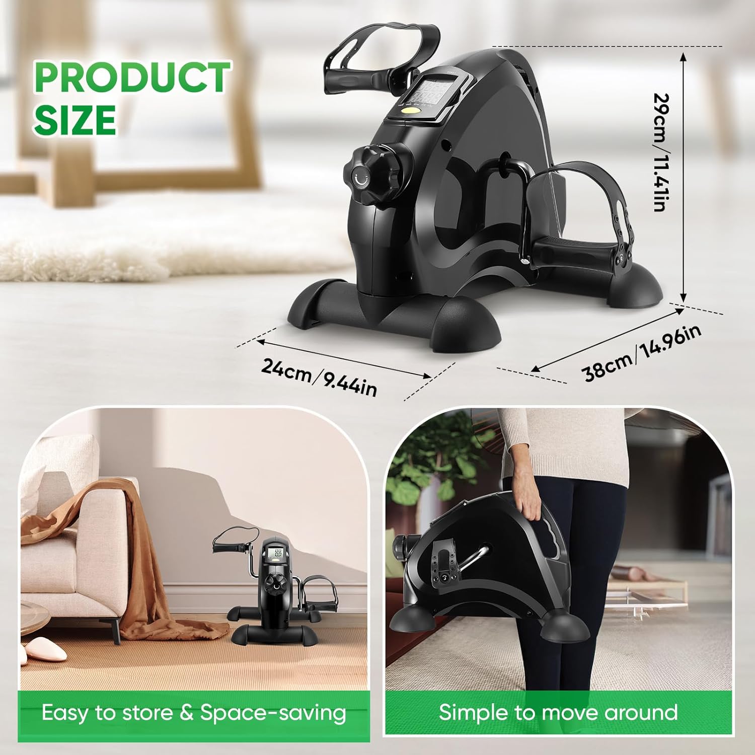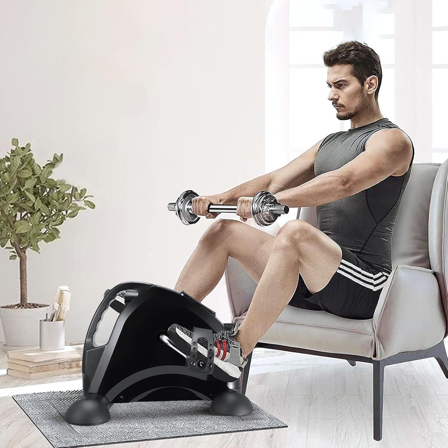 La mini bicicleta estática Towwoo es perfecta para disfrutar del fitness en casa. Con un diseño compacto y silencioso, este pedaleador eléctrico es ideal para entrenar brazos y piernas. La resistencia se puede ajustar para adaptarse a diferentes niveles de condición física, y la pantalla LCD muestra datos como RPM, tiempo, velocidad, distancia y calorías quemadas.