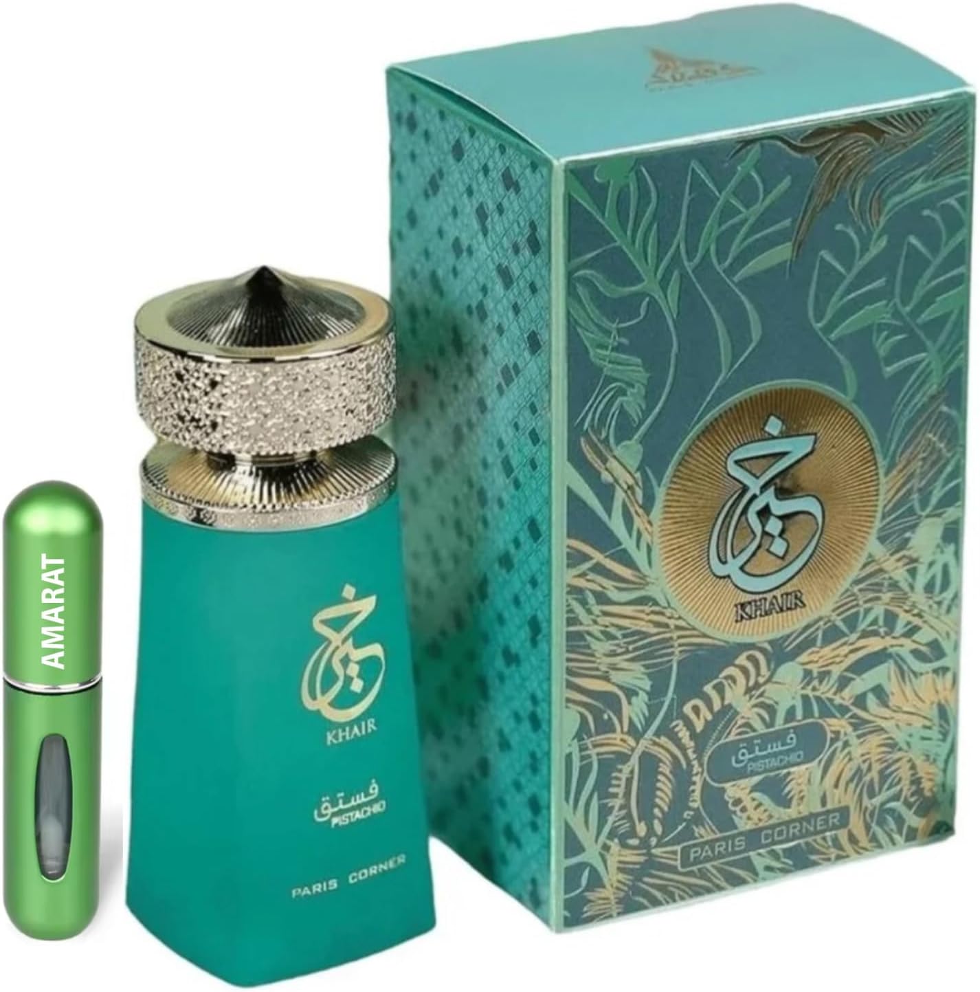 ¡Descubre el precio del Perfume Khair Pistachio 100ML, un exquisito Perfume Árabe Unisex de Larga Duración con notas de pistacho y vainilla! Haz clic en el botón a continuación para consultar el precio de este Eau De Parfum que incluye un Atomizador de 5ML. ¡No te quedes sin disfrutar de esta deliciosa fragancia Gourmand!