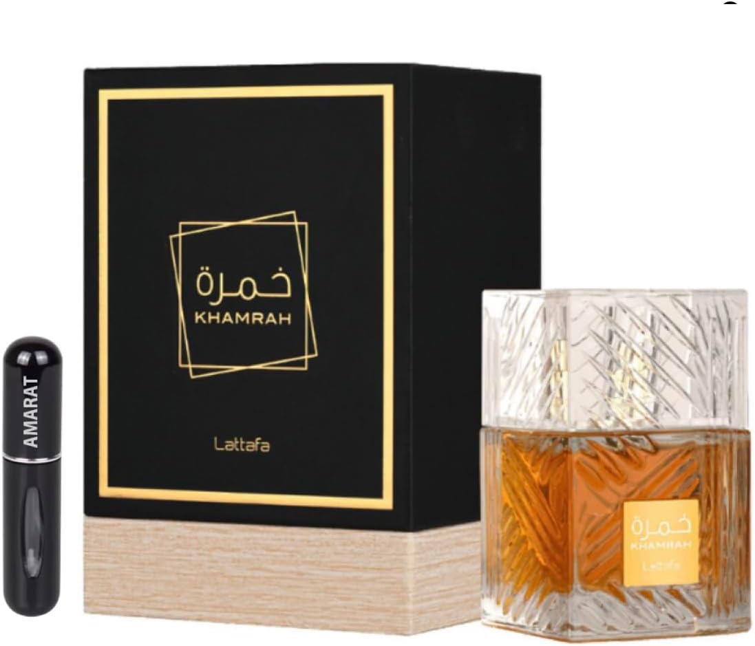 **Khamrah** es una fragancia oriental incomparable que combina la dulzura de la vainilla y la canela con toques especiados y amaderados. Importado directamente desde Dubái, Emiratos Árabes Unidos, este perfume garantiza autenticidad y calidad. Viene en una elegante caja negra y incluye un atomizador recargable de 5ML para una aplicación precisa. Ideal para uso diario o para ocasiones especiales, Khamrah ofrece una durabilidad excepcional y un aroma envolvente que te acompañará todo el día.