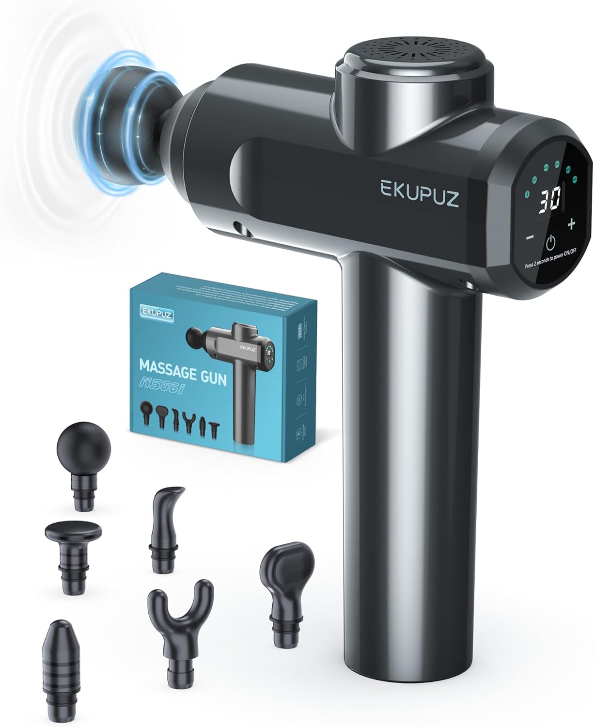 Pistola de masaje eléctrica portátil, aparato de masaje muscular ultra silencioso, pistola de masaje con 30 velocidades, 6 cabezales de masaje y pantalla LCD para el cuerpo, espalda – ¿vale la pena?