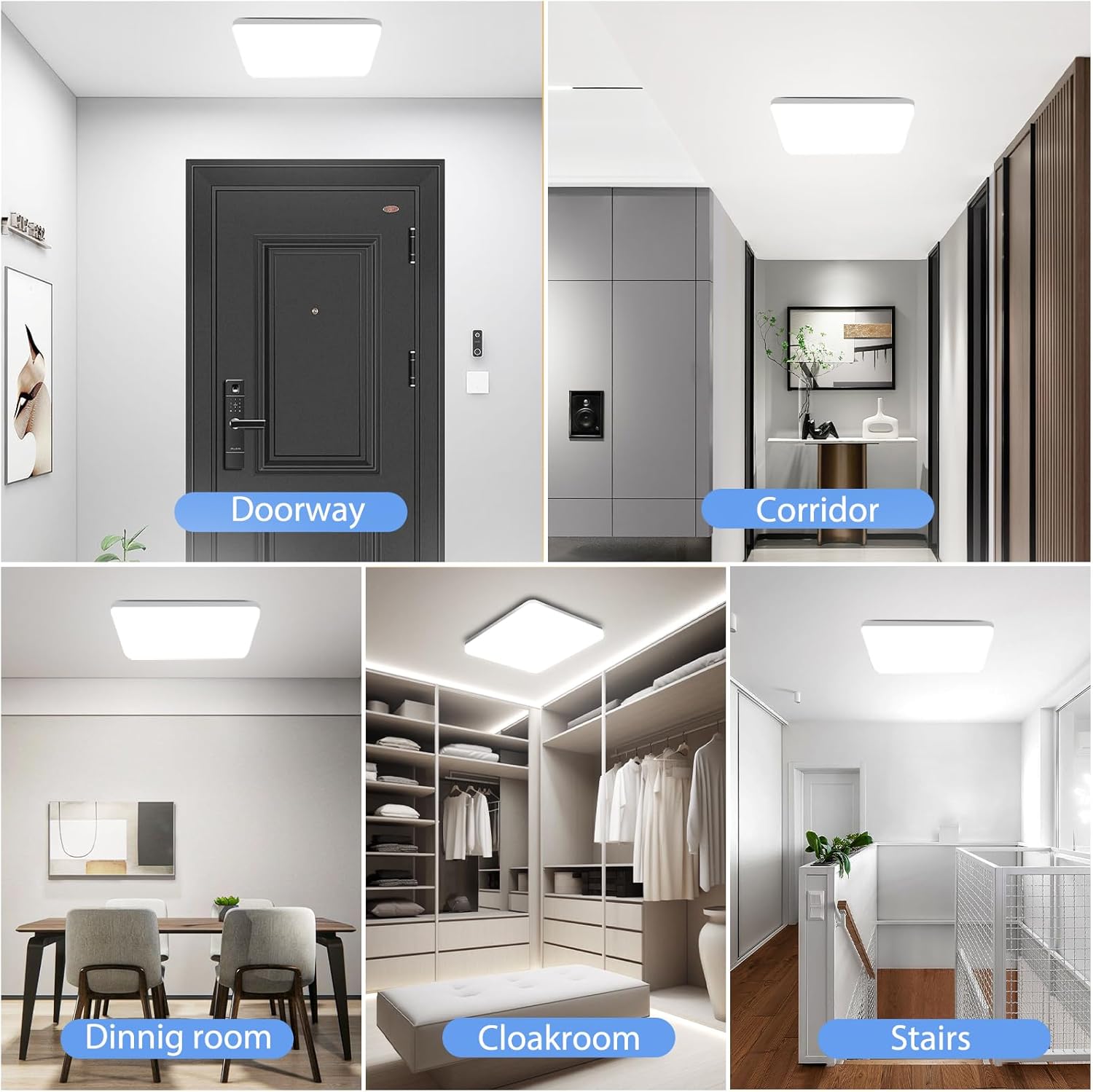 Alto Brillo&Sin Parpadeo: La lámpara LED techo cuadrada de 20 W proporciona efectos de iluminación de luz blanca natural de 2000 lm 6500 K y un ángulo de iluminación de 180°. Emitiendo una luz brillante y uniforme, es adecuada para habitaciones de 10 a 20 m². Además, cuenta con un índice de reproducción cromática (CRI) de 80+ para una luz suave y protección ocular.