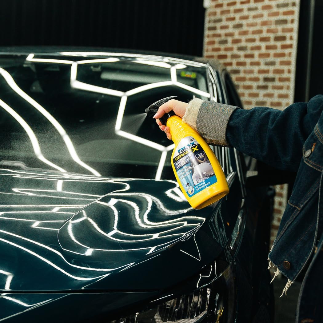 Disfruta de un brillo impecable y una protección avanzada con **Rain-X Cerami-X Detailer Premium**, el recubrimiento cerámico de alto rendimiento diseñado para realzar, proteger y prolongar la vida de la pintura de tu vehículo. Su innovadora fórmula combina polímeros cerámicos HydroShield con la tecnología híbrida Si-O, creando una barrera protectora resistente y ultra brillante que resalta el color y la profundidad de la carrocería, dejando un acabado tipo espejo sin marcas ni residuos. Este detailer de calidad premium sella y protege las superficies exteriores del automóvil, incluyendo pintura, molduras y piezas cromadas, asegurando un escudo duradero contra agentes externos. Gracias a su potente acción hidrofóbica, repele eficazmente el agua, evitando la acumulación de suciedad y la formación de manchas de lluvia o cal. Además, su protección de larga duración resiste hasta 3 meses, blindando la carrocería contra los efectos de la intemperie, la contaminación, el polvo, la lluvia ácida, el salitre, los insectos y los excrementos de aves, factores que pueden deteriorar la pintura con el tiempo. Una de sus mayores ventajas es la protección UV integrada, que actúa como un filtro solar para la pintura del vehículo, evitando la decoloración y la pérdida de brillo causada por la exposición prolongada al sol. Su fórmula no abrasiva permite una aplicación fácil y segura, sin riesgo de rayar la superficie. Para obtener un resultado aún más espectacular, se recomienda aplicar tras cada lavado, asegurando que la carrocería luzca siempre impecable con un brillo profundo y una suavidad extrema al tacto. **Rain-X Cerami-X Detailer Premium** no solo mejora la apariencia del automóvil, sino que también facilita su mantenimiento. Al crear una superficie súper resbaladiza, evita que el polvo y la suciedad se adhieran, reduciendo la necesidad de lavados frecuentes y haciendo que cada limpieza sea más rápida y sencilla. Solo hay que pulverizar, limpiar y pulir para obtener un acabado reluciente y protegido. Ideal para quienes buscan una solución eficaz, práctica y duradera para el cuidado de su vehículo.