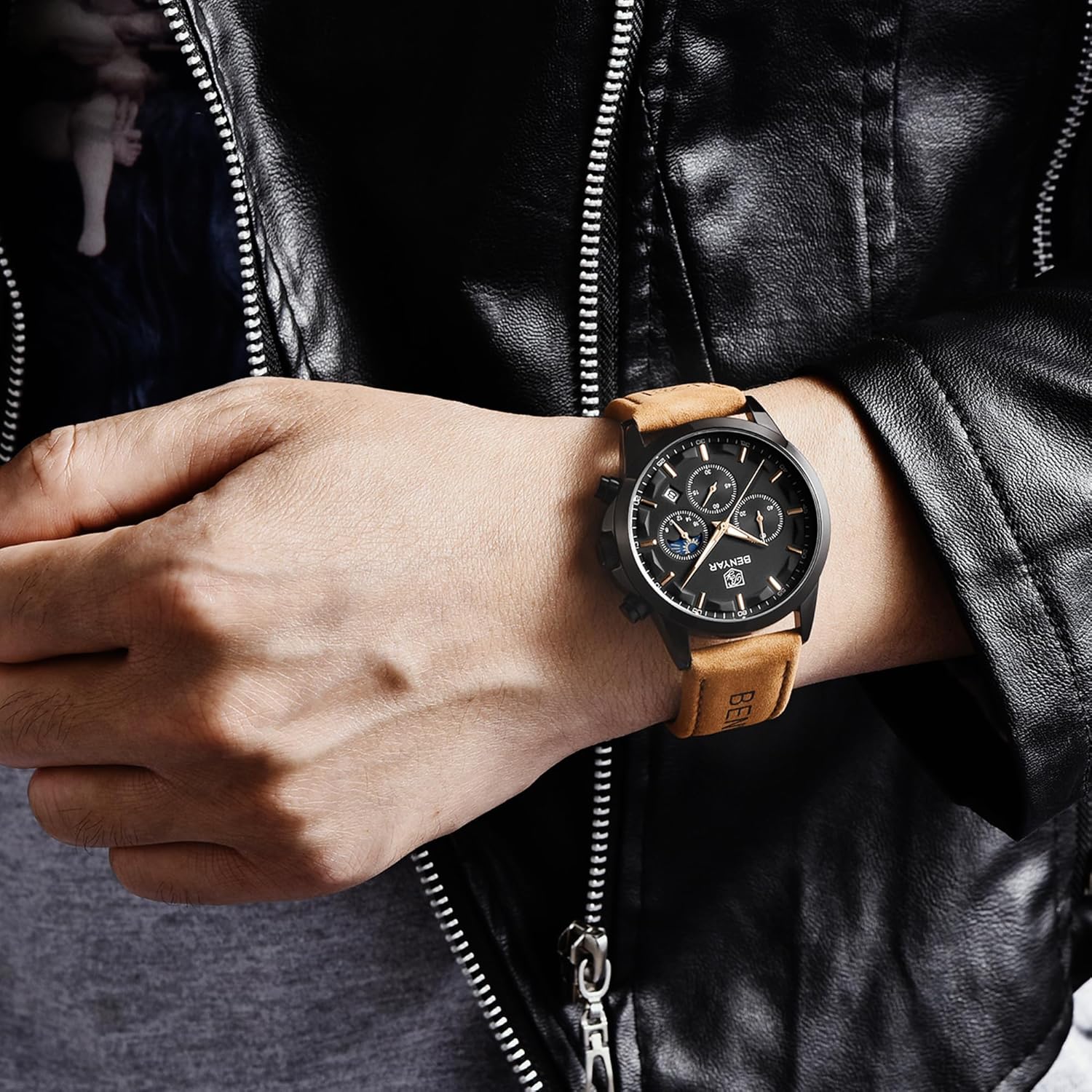 BENYAR Relojes para Hombre Analógico Movimiento Cuarzo Cronógrafo Impermeable Luminoso Moda Casual Reloj de Pulsera Correa de Cuero Elegante Regalo para Hombre – ¿vale la pena?