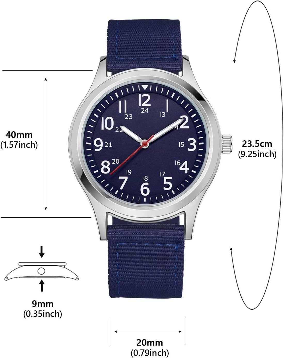 Reloj Hombre Deportivo Militar Reloj Pulsera Hombre Analógico 12/24 Horas Cuarzo Nylon