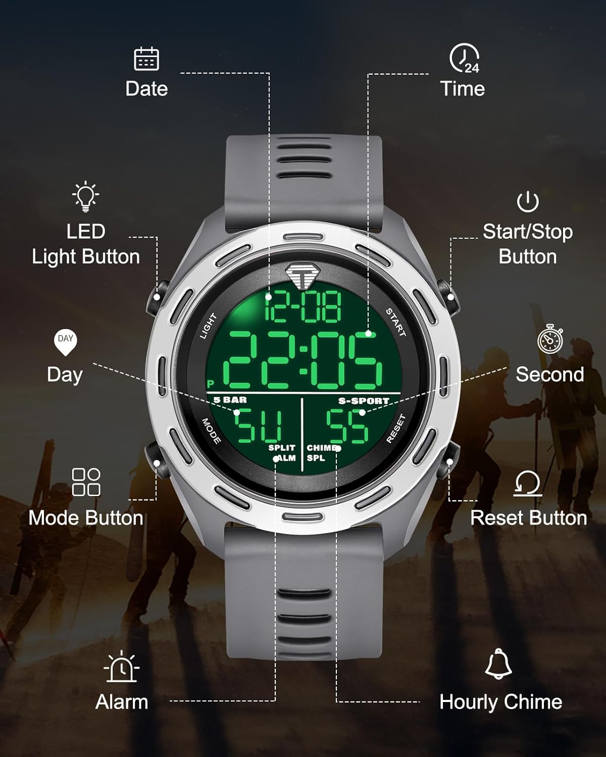 Si le encantan los deportes, si le gustan las aventuras al aire libre, si está buscando un regalo práctico para un hijo adolescente, un padre o un marido preocupado por su salud, entonces nuestro reloj digital multifuncional de esfera grande es una de sus opciones ideales.