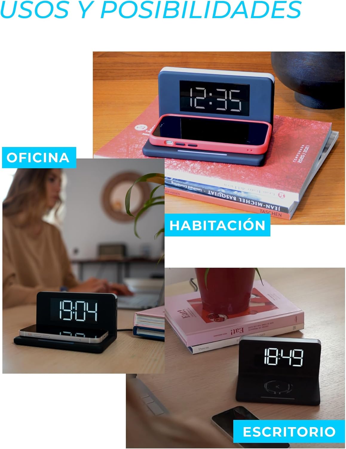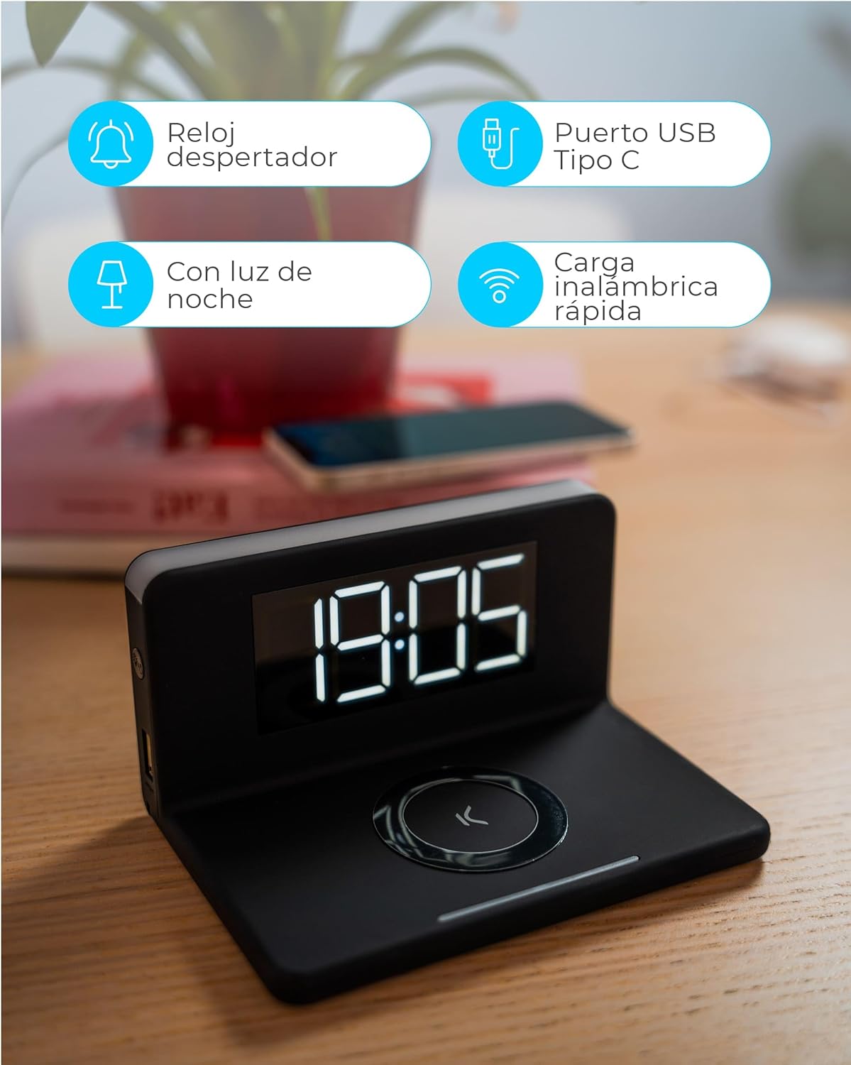 # Ksix Reloj Despertador Digital con Cargador Inalámbrico Qi – Despertador Inteligente con Carga Rápida 10kw – Despertador Digital con Pantalla LED – Reloj Mesita de Noche con Puerto USB – ¿vale la pena?