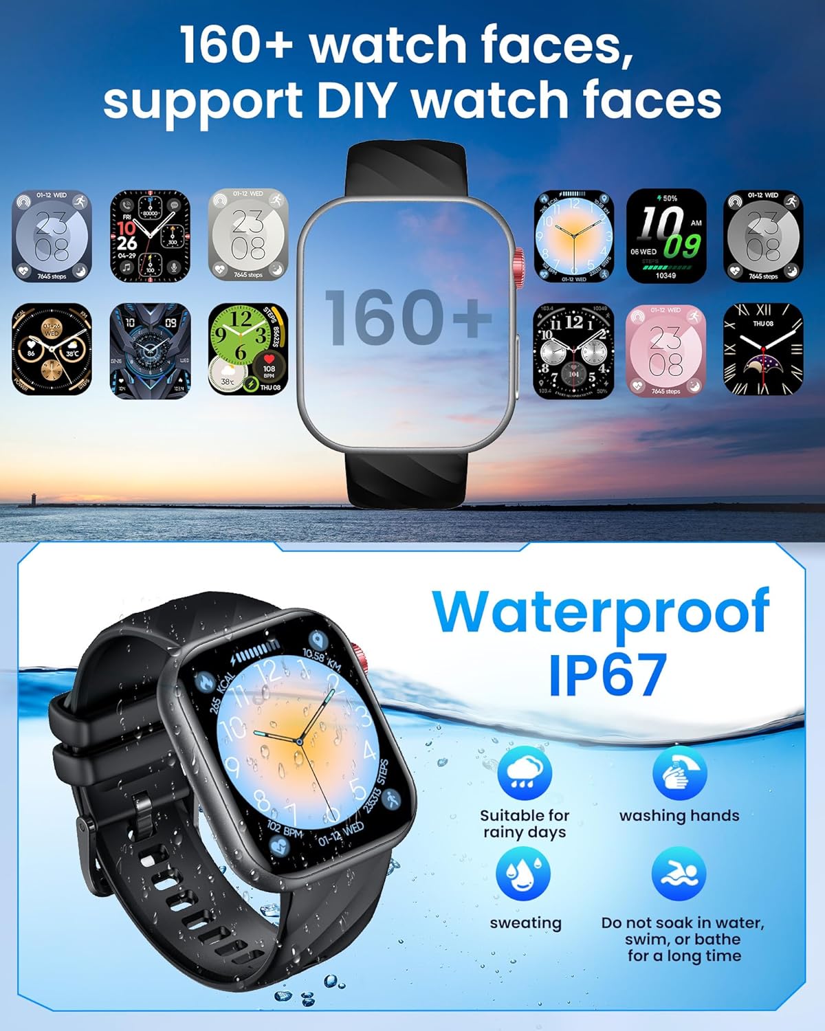 1.97» pantalla táctil AMOLED / esfera personalizada: Relojes inteligentes hombres 1.97» utiliza una pantalla AMOLED de alta definición con una resolución de 390 * 450, lo que hace que la imagen de la pantalla sea más delicada, clara y rica en expresividad de color. Este reloj inteligente hombre tiene 7 diales incorporados para cambiar a voluntad, y hay una gran cantidad de diales en hband para que elijas, y también puedes personalizar familiares, mascotas, paisajes y amigos como diales.