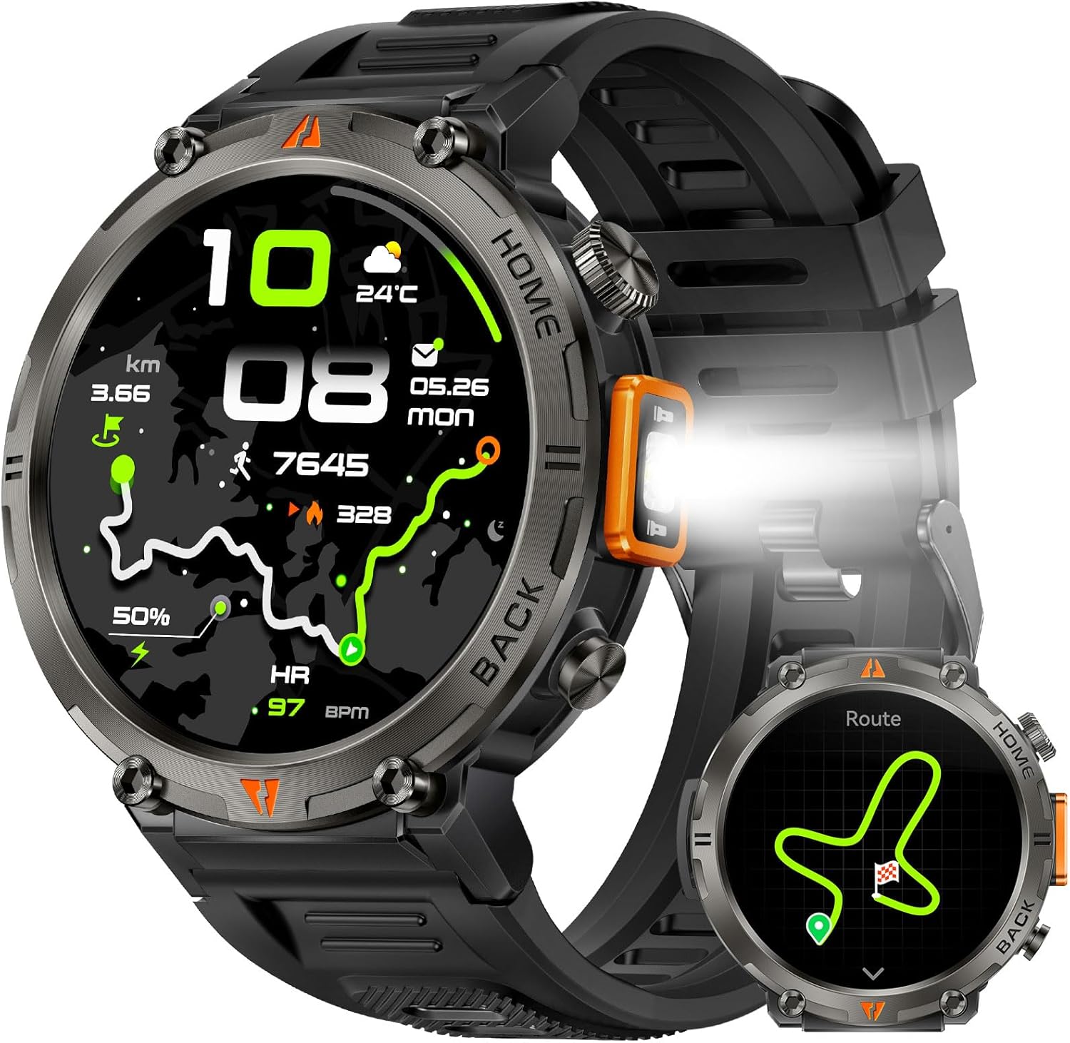 GPS Militar Reloj Inteligente Hombre con LED Linterna, 1,45» 3ATM Impermeable Smartwatch Hombre con Llamadas Bluetooth, Fitness Tracker con Brújula/110+ Modos Deportivos/SpO2/Pulsómetro, iOS Android – ¿vale la pena?