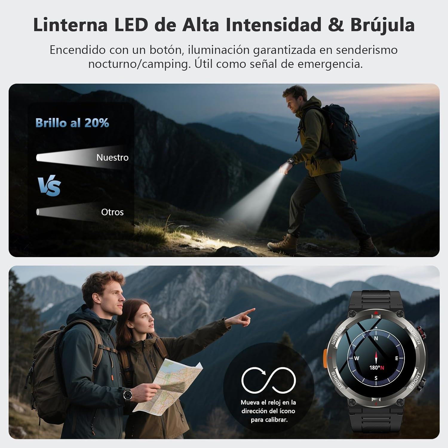 Yxtel Reloj Inteligente Hombre Militar, 1.45″ Smartwatch con Llamadas Bluetooth, 960mAh, Linterna LED, Brújula, 123 Modos Deporte, Monitor Cardíaco 24h/SpO2/Sueño, IP68, 2 Correas (iOS/Android) – ¿vale la pena?