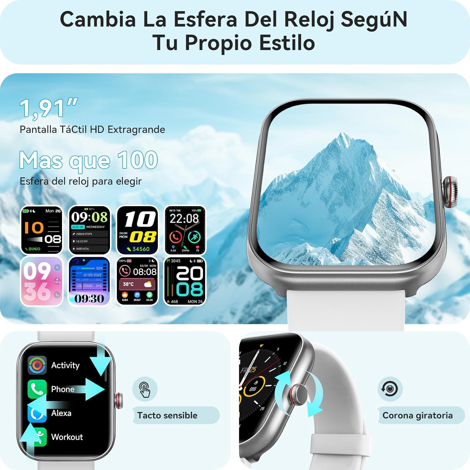 Reloj Inteligente Mujer- 1.91″ Smartwatch Mujer de Llamada Bluetooth y Alexa, WhatsApp Notificaciones, 24H Sueño Pulsómetro SpO2 Monitoreo, 120 Modos Deportivos, IP68 Regalo Mujer para Android iOS – ¿vale la pena?