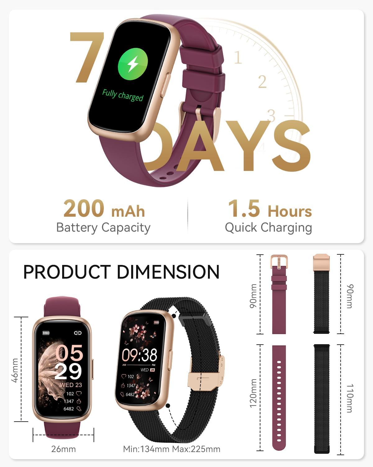 El RUXINGX Reloj Inteligente Mujer es una excelente opción para las mujeres que buscan un smartwatch funcional y elegante. Con un diseño delgado y liviano, este reloj inteligente es perfecto para usar durante todo el día, tanto en actividades deportivas como en ocasiones más formales. Además, cuenta con 24 modos deportivos para que puedas rastrear tus entrenamientos de manera precisa.