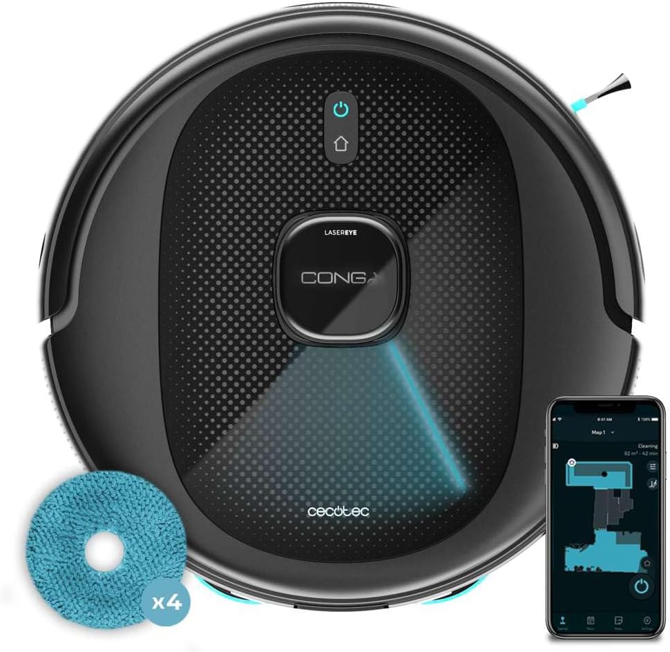 - Navegación láser inteligente: el robot aspirador Conga 9590 Spin Revolution utiliza la tecnología de navegación láser para mapear y limpiar de manera eficiente tu hogar.