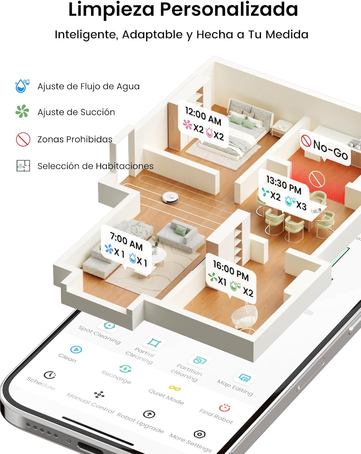 | Mapeo multinivel para una limpieza personalizada| No es compatible con todas las apps de control de limpieza|