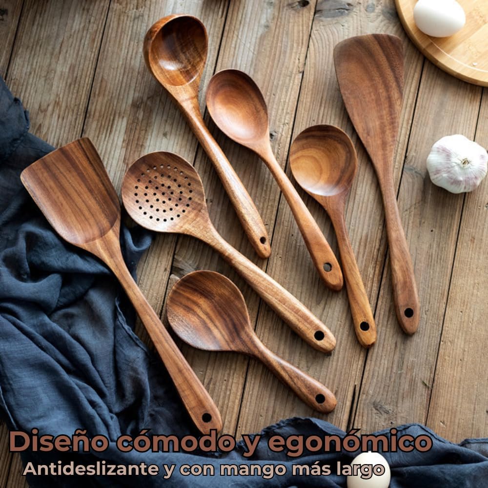 Set de 12 Utensilios de Cocina de Madera de Teca – Incluye Cazo, Espátulas, Cucharas, Pinzas, Bote de madera y Soporte para Cucharas – Resistente, Elegante y Completo – Ideal para Cocinar y Servir – ¿vale la pena?