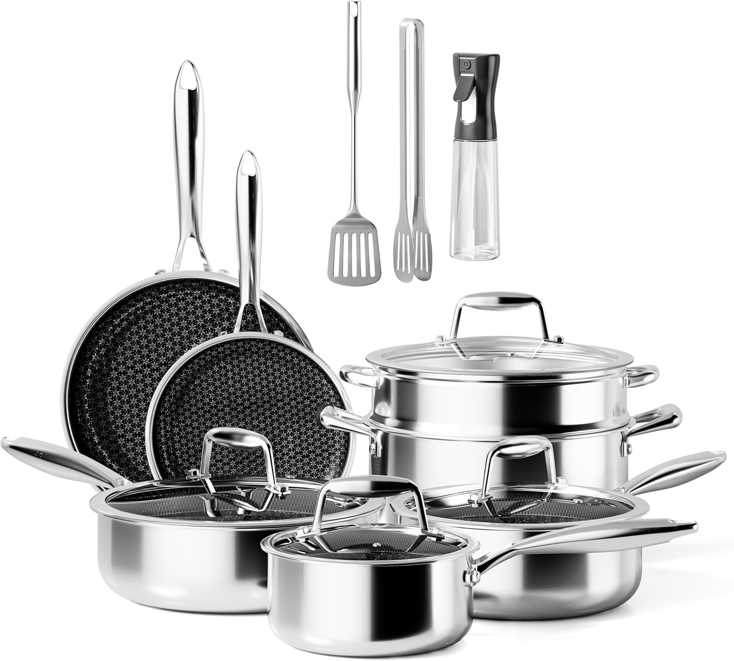 ¿Te ha parecido útil esta función de resumen del producto? El juego de utensilios de cocina RIOVARM de acero inoxidable es una excelente adición a tu cocina. Está fabricado con acero inoxidable de alta calidad, libre de sustancias nocivas como PTFE, PFOA, PFAS, plomo y cadmio. La construcción de tres capas garantiza una distribución óptima del calor para un calentamiento rápido y uniforme, lo que te permite ahorrar energía.