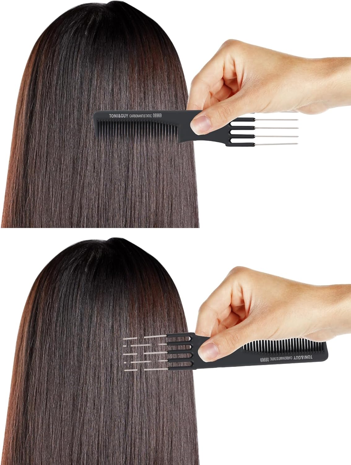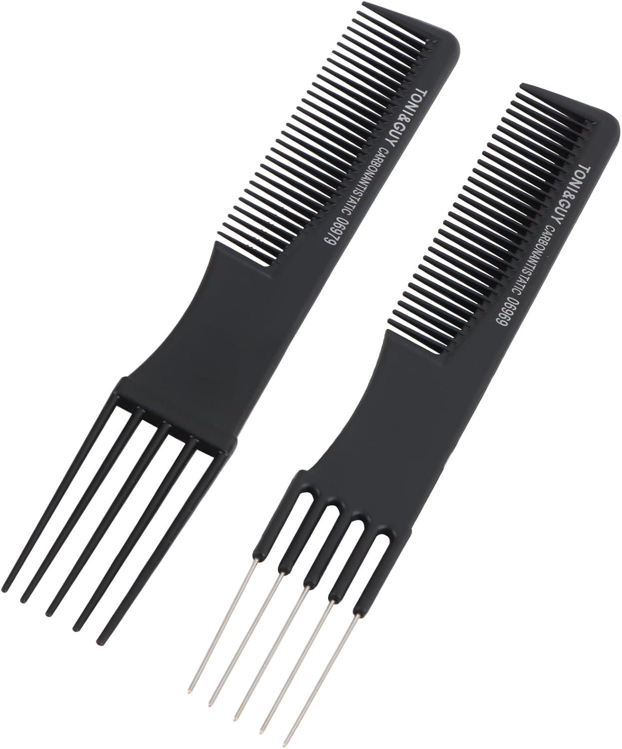 Bohrma 2 peines para peinar el cabello, peine profesional para el cabello, peine para la cola, peine para peluquín, peine negro para la cola del peluquero, accesorios de peluquería, herramientas de peluquero para estilista, peluquería, 2 funciones: un extremo tiene un peine de dientes finos, el otro extremo tiene un tenedor para peinar. LIGERO Y PRÁCTICO: este pequeño peine mide 7,75″ x 1″ y cabe en casi cualquier bolsillo. SUAVE PARA LA PIEL: este peine de peluquería tiene bordes redondeados para proteger el cabello y el cuero cabelludo. Se siente bien en la mano: el mango ergonómico ofrece un buen agarre y permite peinarlo fácilmente. Deslizamiento suave: el peine de peluquería de metal se desliza cómoda y suavemente por el cabello.