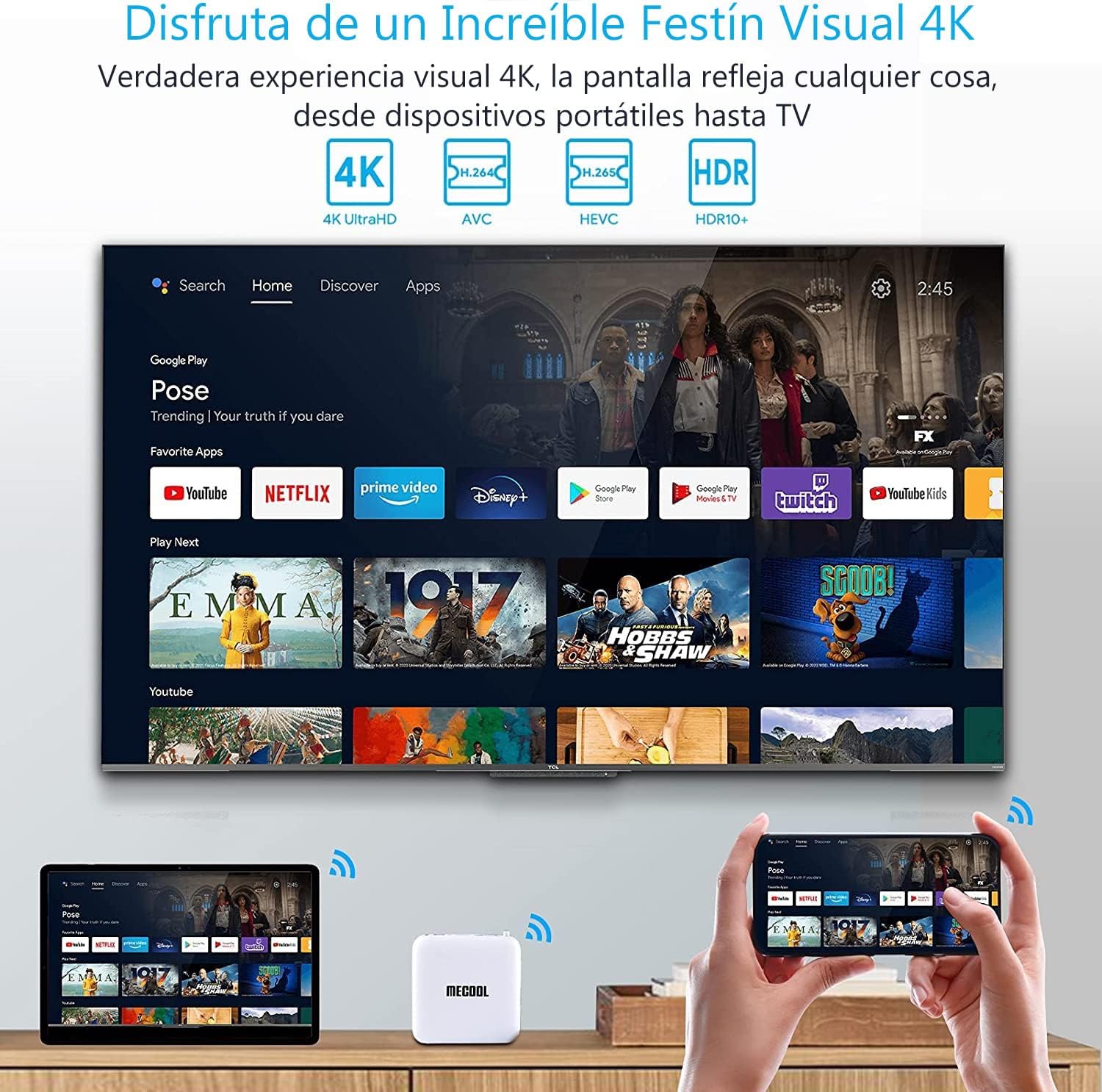 De la marca MECOOL, el Android Smart Box TV 10.0 KM2 es un reproductor de medios en streaming que combina potencia y funcionalidad. Con el procesador Amlogic S905X2-B Quad Core ARM Cortex-A53 y sistema operativo Android 10.0, este dispositivo ofrece una experiencia de visualización fluida y sin búfer.