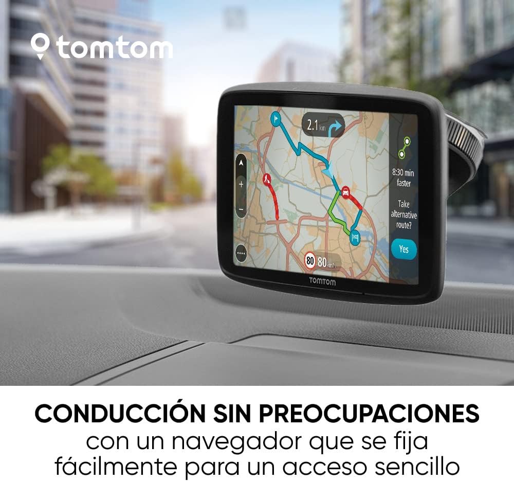 Soporte magnético inteligente: Colocar y retirar el navegador es rápido y cómodo (incluso con una mano) con el soporte de parabrisas activo de TomTom.