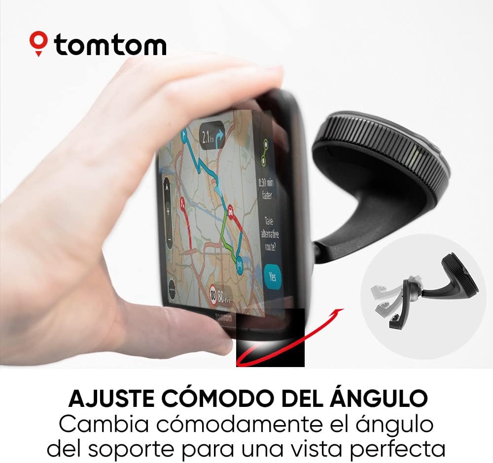 Ajusta el soporte de navegador: Cambia el ángulo del soporte de parabrisas activo de TomTom para disfrutar de una vista perfecta. Sin volver a montarlo