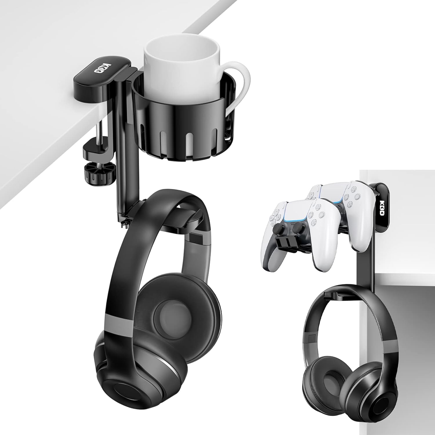 KDD Soporte Auriculares Gaming Rotación de 360°- 3 en 1 Soporte Mando & Reemplazable Soporte Vaso – Soporte Cascos Gaming en ABS, Compatible con Auriculares Universales, Controladores y Vasos (Negro) – ¿Vale la pena?