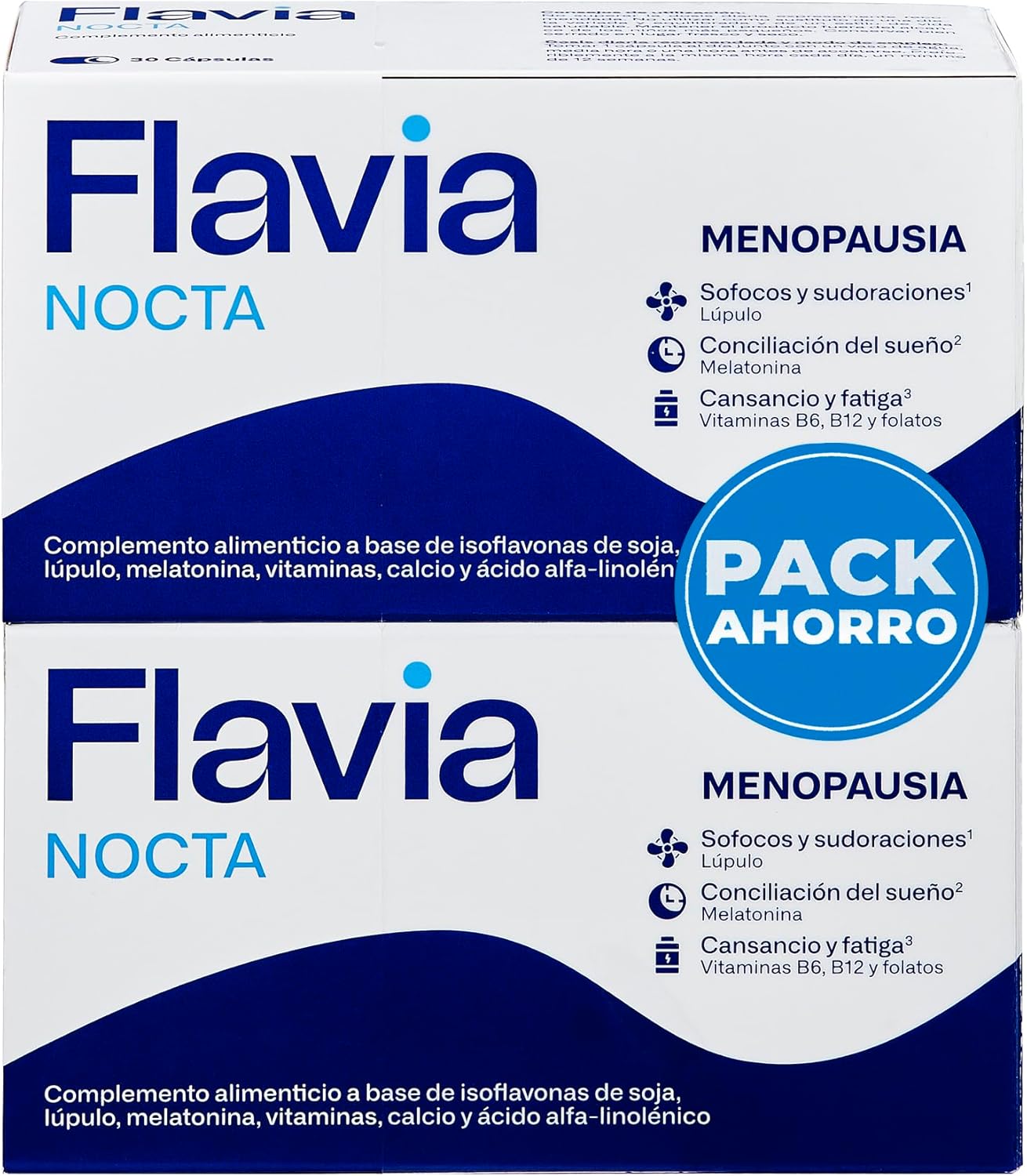 FLAVIA Nocta 2 uds x 30 Comprimidos, Alivia los Síntomas de la Menopausia, Isoflavonas de Soja y Melatonina, Mejora el Sueño, Bienestar de los Huesos, Disminuye Cansancio y Fatiga, Estudios Clínicos – ¿vale la pena?