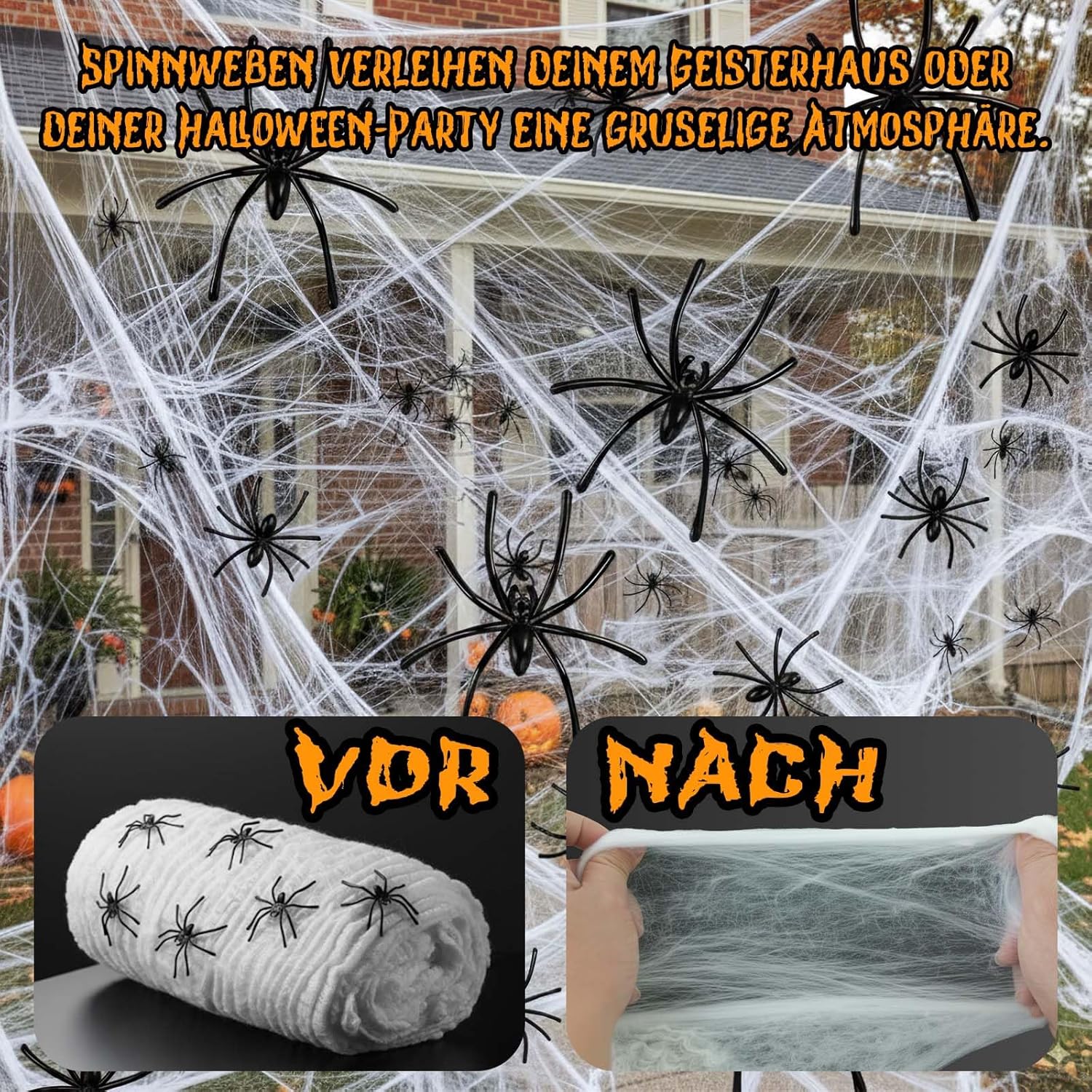 La telaraña Halloween decoración incluye 200g de tela de araña extensible y 60 arañas de plástico para decorar tu casa, jardín o fiesta de Halloween. La tela de araña es fácil de estirar y ajustar a tus necesidades, creando un ambiente terrorífico y espeluznante.
