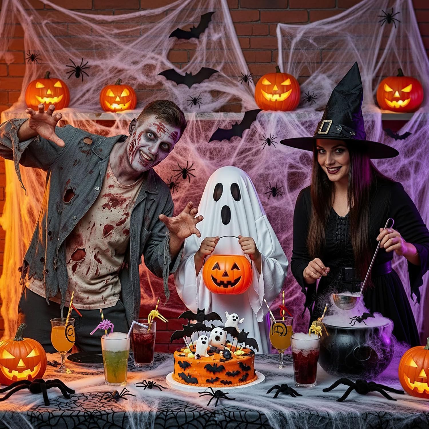 "La tela de araña y las arañas son perfectas para decorar mi casa en Halloween, ¡me encanta el ambiente que crean!"