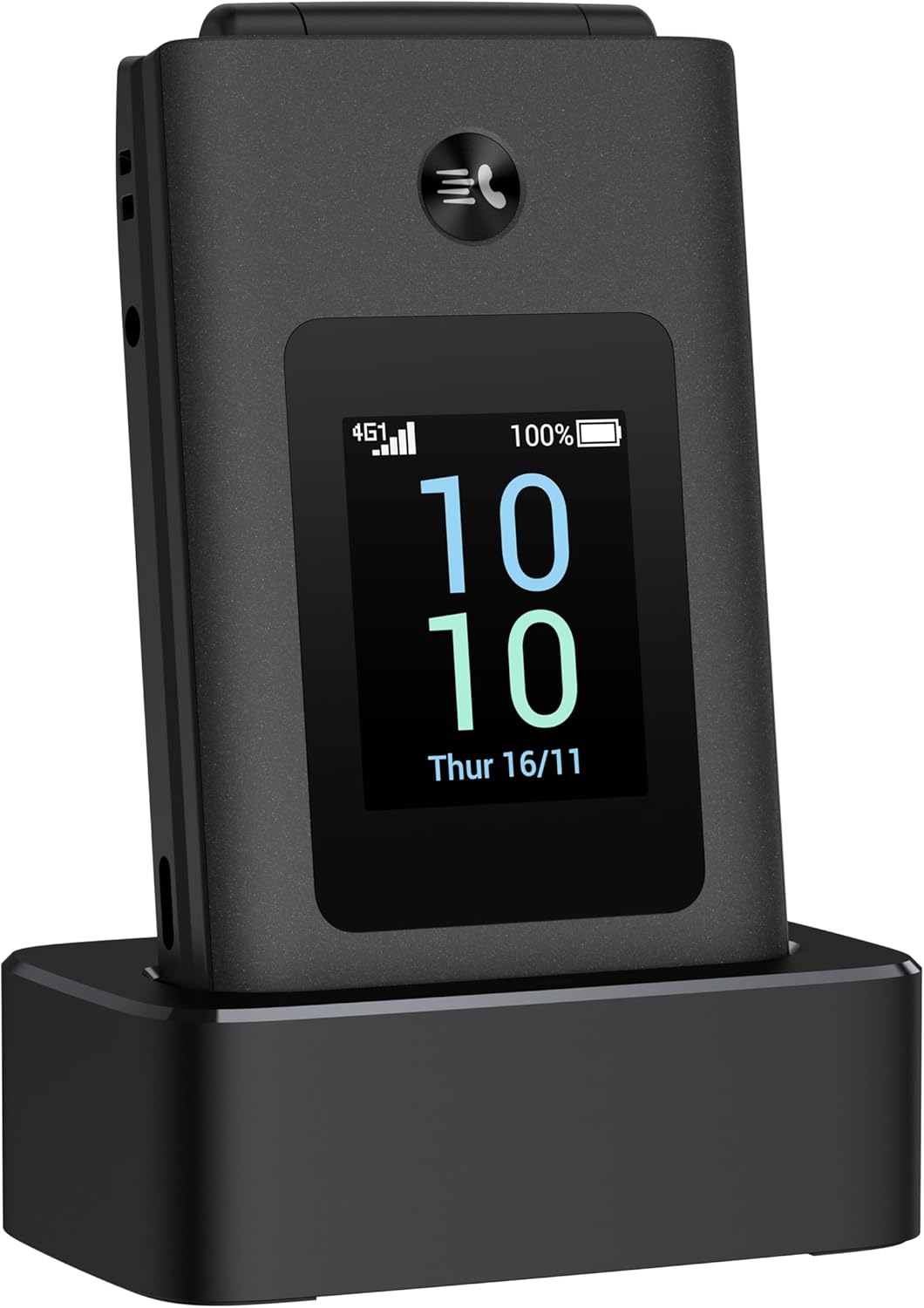 Diseño abatible con dos pantallas. Una pantalla externa de 1,77″ para leer fácilmente las notificaciones y una pantalla interna de 3,2″ repleta de funciones. Construido con una textura sutil para una sensación cómoda en la mano. Llamadas de voz de alta calidad 4G VoLTE. Disfruta de llamadas nítidas con conectividad 4G VoLTE. Sonido más nítido optimizado gracias a un único altavoz con amplificador de potencia interno y un receptor de alta sensibilidad. Navegación sencilla gracias a botones e iconos grandes. Navega fácilmente por su intuitiva interfaz gracias a su gran teclado. Además, el tamaño del texto y los iconos ajustables te permiten ver el contenido fácilmente. Herramientas fáciles de usar. Despliega fácilmente el teléfono para responder a las llamadas. Carga tu teléfono fácilmente sin tener que lidiar con los molestos cables. Potente linterna. Utiliza el botón SOS para acceder rápidamente a tus seres queridos en caso de emergencia. Lupa, Facebook, FM, juegos y más funciones.