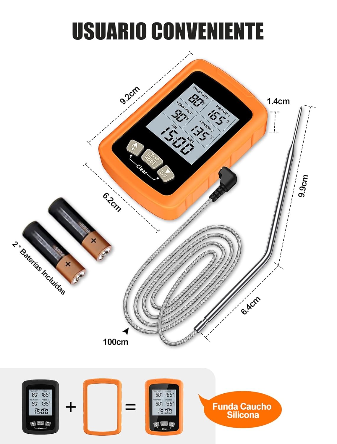 CIRYCASE Termometro Cocina, Termometro Carne Digital de Lectura Rápida & Precisa con Sondas Duales 16.3cm, Retroiluminada & Alarma Temporizador, Termometro Horno Apagado Auto para Parrilla/Horno/BBQ – ¿vale la pena?