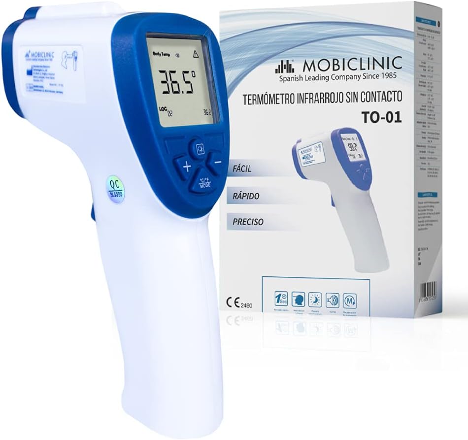 Mobiclinic, Termómetro digital infrarrojos sin contacto to-01, De frente, Marca española, Para adultos, Marcado ce, Pantalla lcd, Alarma fiebre, Función memoria – ¿vale la pena?