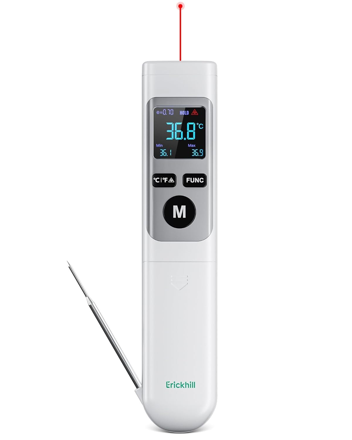 Termómetro infrarrojo ERICKHILL -50-550℃ con sonda de -50-260 ℃, pantalla digital retroiluminada LCD, emisividad ajustable, adecuado para mantenimiento de vehículos/cocina/barbacoa/comida – ¿vale la pena?