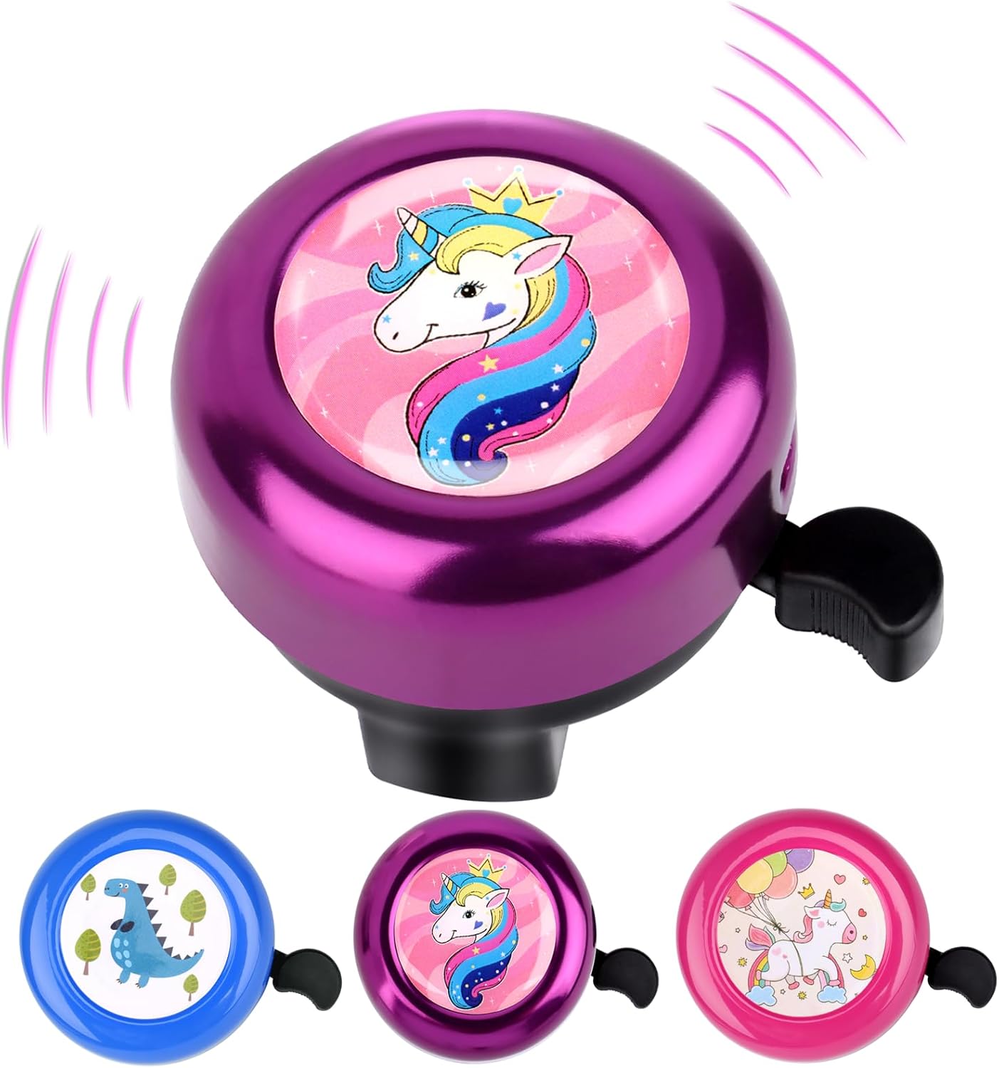 Timbre para Bicicleta con Unicornios: El timbre bicicletas infantil es elegante y transparente, robusto, pequeño hace un anillo bien audible. Nuestro timbre bicicleta dispone de un diseño de unicornio que hace que cualquier bicicleta infantil sea llamativa. Perfecto para niños y niñas.