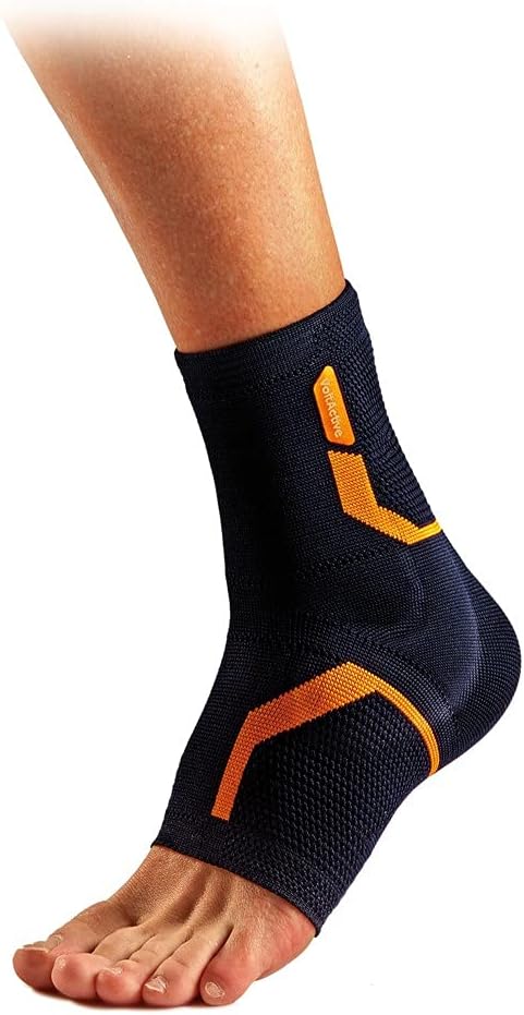 Voltactive tobillera izquierda, demostrado para aliviar el dolor de tobillo, reducir la inflamación y la potencial sobrecarga de los ligamentos, ayudando en la movilidad de la articulación