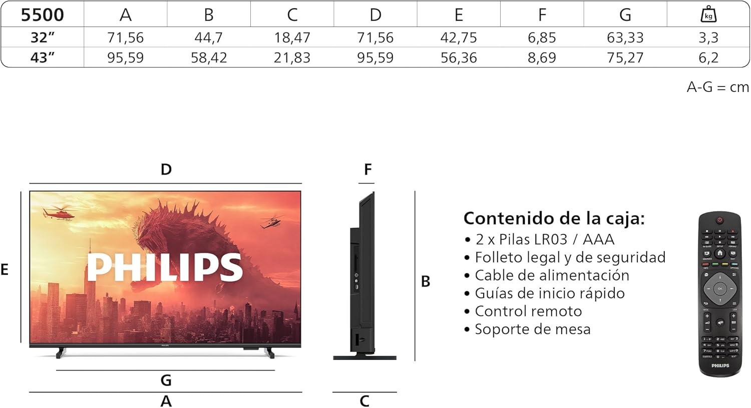 En resumen, la Philips 32PHS5500 FHD LED TV ofrece una experiencia de visualización inmersiva y de alta calidad, con un diseño compacto y elegante que la hace perfecta para cualquier espacio. Si buscas un televisor con una excelente relación calidad-precio, esta opción definitivamente vale la pena.