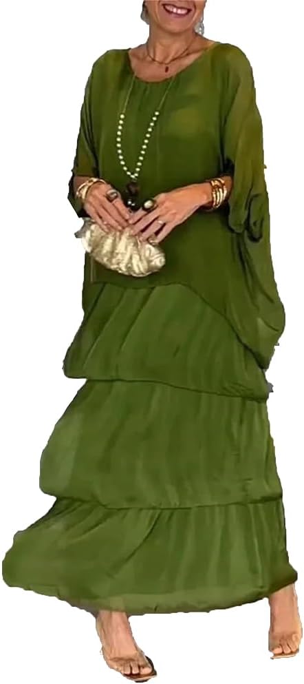 EUUDROBY Vestido Suelto de Estilo artístico, Vestidos Largos de Verano de Talla Grande con Cuello Redondo y Manga (Large,Green) – ¿vale la pena?